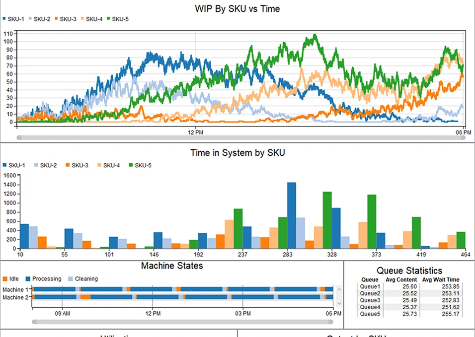 Una vez teniendo tu modelo listo y tu planta simulada, utiliza el panel completo de recursos para el análisis estadístico para obtener un entendimiento más profundo de tus procesos.